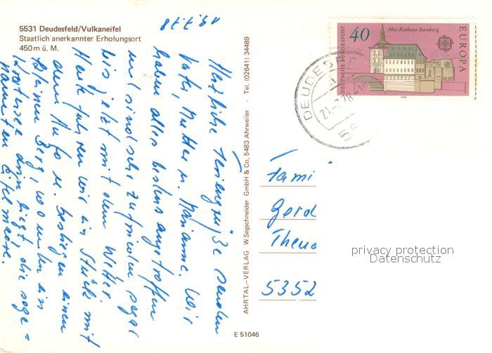 73673191 alte Postkarte Deudesfeld Panorama Erholungsort postalisch gelaufen Erhaltung siehe scans [FriedD77] KatCode: 11110007233017