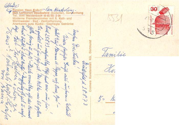 73904750 alte Postkarte Deudesfeld Pension Haus Erdorf postalisch gelaufen Erhaltung siehe scans [FriedD77] KatCode: 11110007233017
