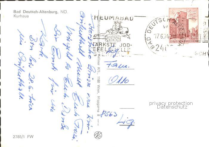 72310825 alte Postkarte Deutsch-Altenburg Bad Kurhaus postalisch gelaufen Erhaltung siehe scans KatCode: 11390127030702