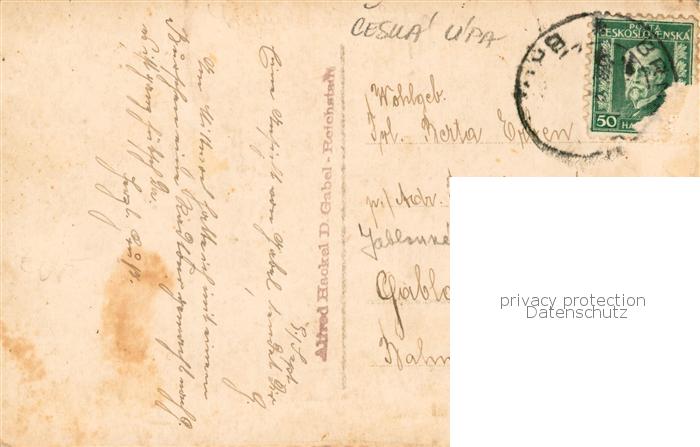 old postcard Deutsch-Gabel Jablonne Podjestedi CZ Gesamtansicht postalisch gelaufen Erhaltung siehe scans [LiesaD40]