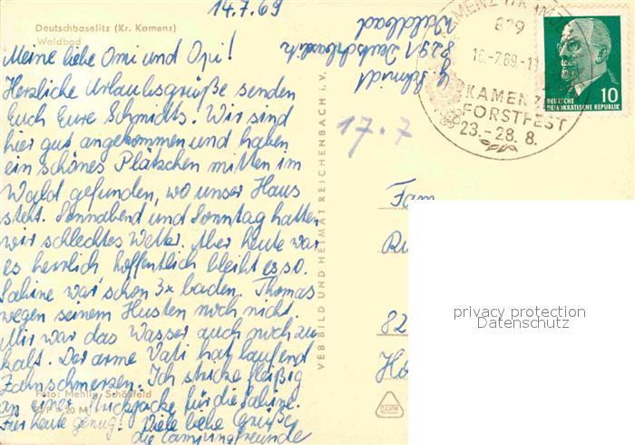 72712310 alte Postkarte Deutschbaselitz Badestrand Waldbad postalisch gelaufen Erhaltung siehe scans [FriedD77] KatCode: 11110014292210