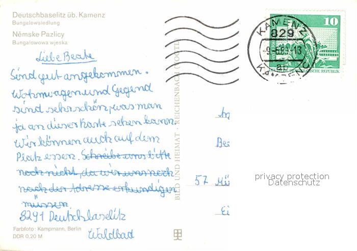 72849569 alte Postkarte Deutschbaselitz Bungalowsiedlung postalisch gelaufen Erhaltung siehe scans [KathaD81] KatCode: 11110014292210