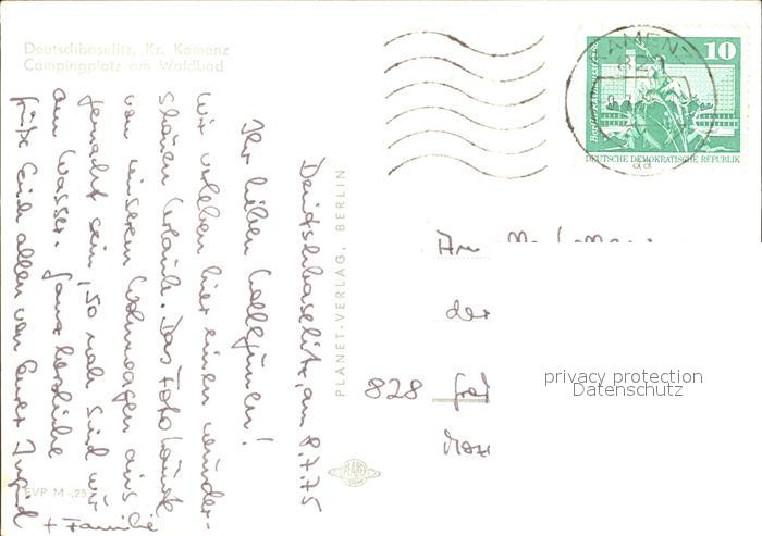 72030746 alte Postkarte Deutschbaselitz Campingplatz am Waldrand postalisch gelaufen Erhaltung siehe scans KatCode: 11110014292210