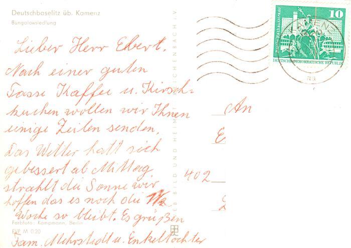 73908006 alte Postkarte Deutschbaselitz Kamenz Bungalowsiedlung postalisch gelaufen Erhaltung siehe scans [WerneD78] KatCode: 11110014292210