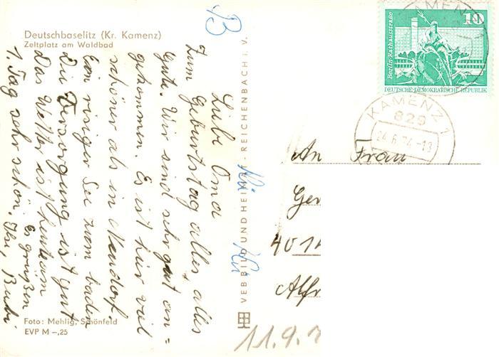 73886074 alte Postkarte Deutschbaselitz Kamenz Zeltplatz am Waldbad postalisch gelaufen Erhaltung siehe scans [FriedD77] KatCode: 11110014292210