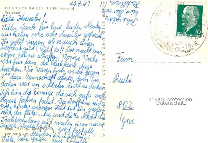 72711533 alte Postkarte Deutschbaselitz Waldbad postalisch gelaufen Erhaltung siehe scans [FriedD77] KatCode: 11110014292210