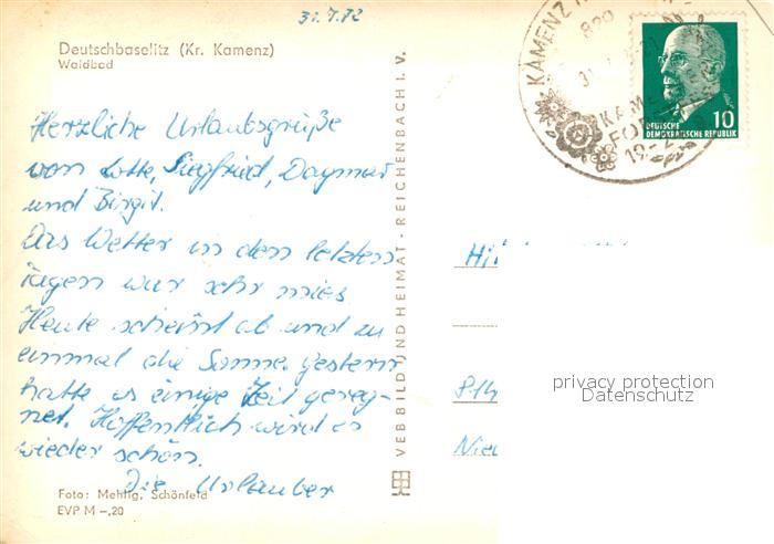 73686022 alte Postkarte Deutschbaselitz Waldbad postalisch gelaufen Erhaltung siehe scans [WerneD78] KatCode: 11110014292210
