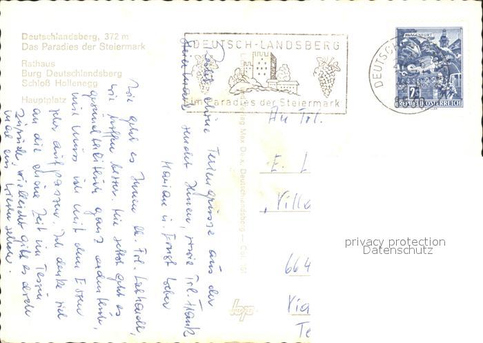 72219422 alte Postkarte Deutschlandsberg Rathaus Burg Deutschlandsberg Schloss Hollenegg Hauptplatz postalisch gelaufen Erhaltung siehe scans KatCode: 11390225060302