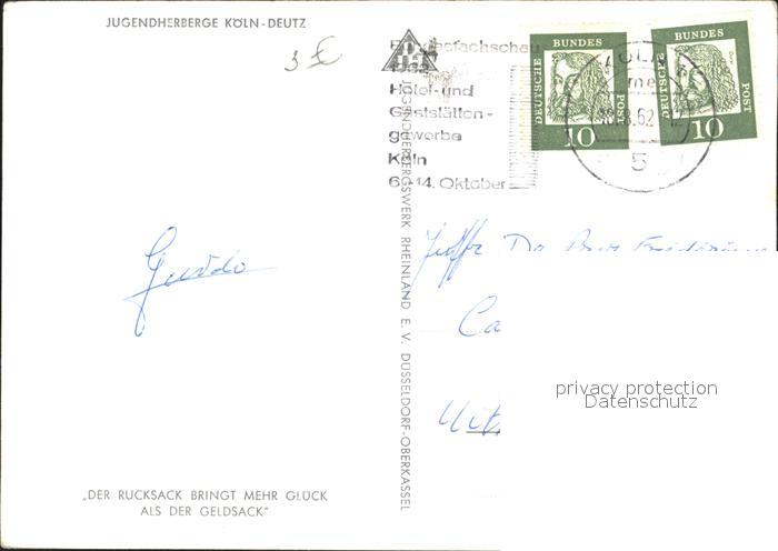 72315492 alte Postkarte Deutz Koeln Jugendherberge postalisch gelaufen Erhaltung siehe scans KatCode: 11110005315000