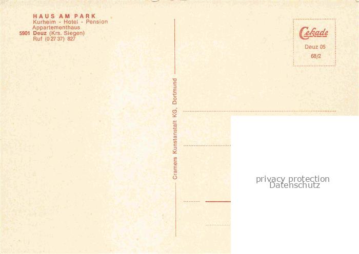 74042700 Deuz Netphen Siegen-Wittgenstein NRW Kurheim Hotel Pension Haus am Park postalisch nicht gelaufen Erhaltung siehe scans [FriedD77] KatCode: 11110005970032