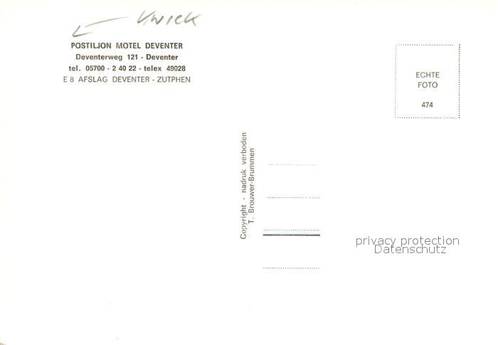 32983682 Deventer Postiljon Motel Deventer postalisch nicht gelaufen Erhaltung siehe scans [NatalD47] KatCode: 11371100