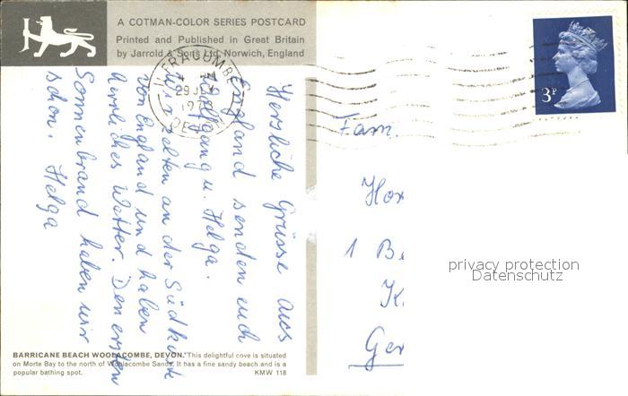 old postcard Devon Exeter Barricane Beach Woodacombe postalisch gelaufen Erhaltung siehe scans