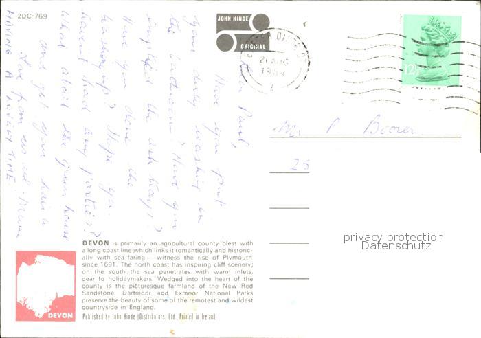 old postcard Devon Exeter Devonshire Villages postalisch gelaufen Erhaltung siehe scans