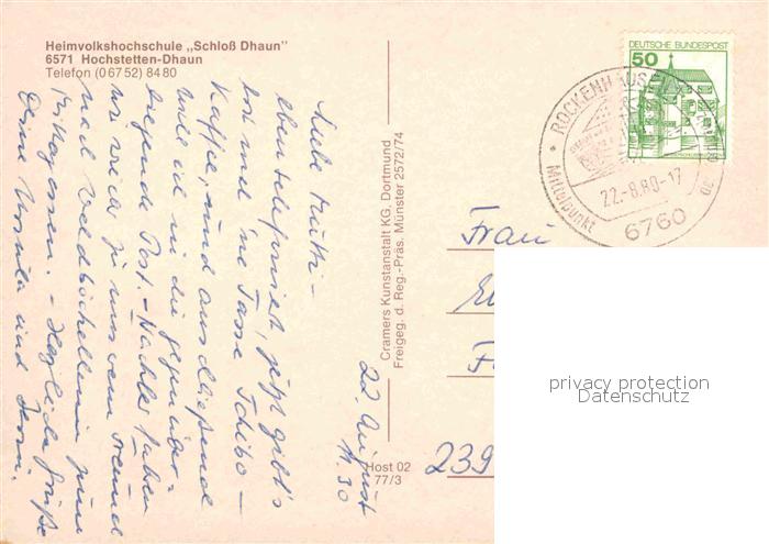 72771093 alte Postkarte Dhaun Heimvolkshochschule Schloss Dhaun Fliegeraufnahme postalisch gelaufen Erhaltung siehe scans [WerneD78] KatCode: 11110007133046