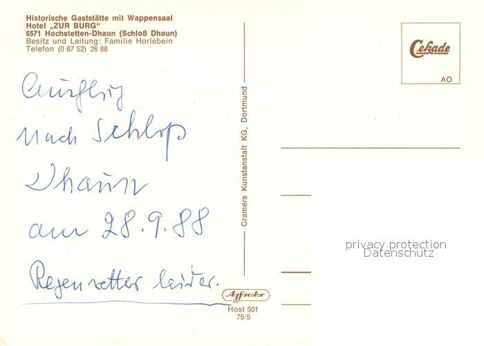 73052976 Dhaun Schloss Gaststaette Wappensaal Hotel zur Burg postalisch nicht gelaufen Erhaltung siehe scans [KathaD81] KatCode: 11110007133046