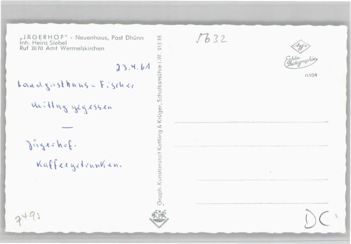 40680620 Dhuenn Wermelskirchen aststätte Jägerhof Neuenhaus * KatCode 11110005378032