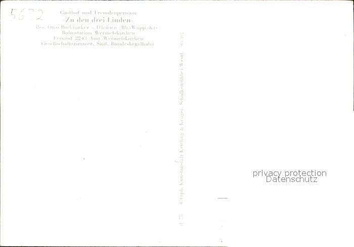 31720814 Dhuenn Wermelskirchen Gasthaus zu den drei Linden postalisch nicht gelaufen Erhaltung siehe scans KatCode: 11110005378032