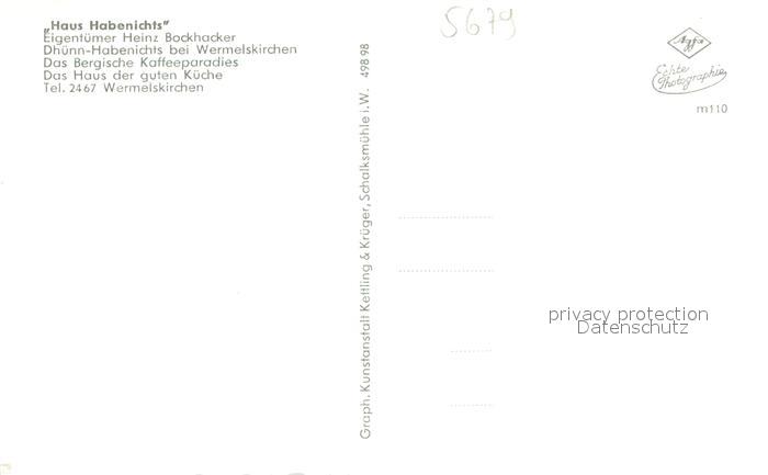 73704686 Dhuenn Wermelskirchen Haus Habenichts Innen und Aussen postalisch nicht gelaufen Erhaltung siehe scans [LiesaD40] KatCode: 11110005378032