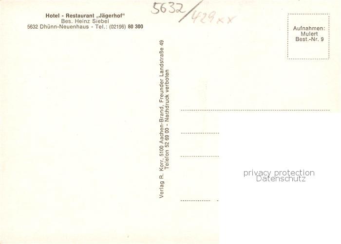 73863276 Dhuenn Wermelskirchen Hotel Restaurant Jaegerhof im Dhuenntal Talsperre Stausee postalisch nicht gelaufen Erhaltung siehe scans [FriedD77] KatCode: 11110005378032