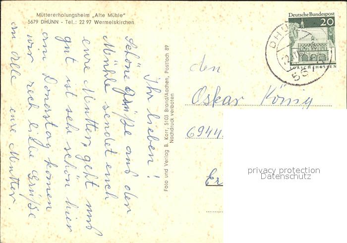 alte Postkarte Dhuenn Wermelskirchen Muettererholungsheim Alte Muehle postalisch gelaufen Erhaltung siehe scans