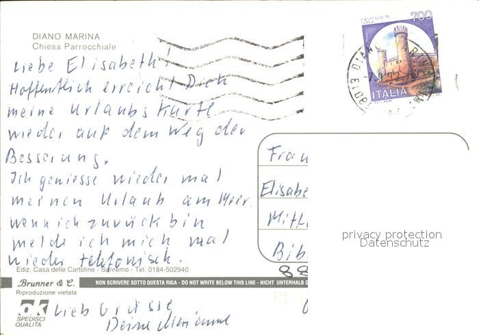 old postcard Diano Marina Chiesa Parrocchiale postalisch gelaufen Erhaltung siehe scans