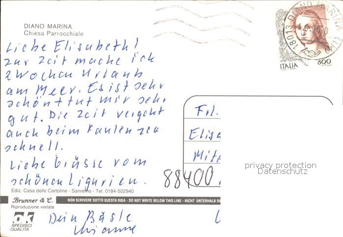 old postcard Diano Marina Chiesa Parrocchiale postalisch gelaufen Erhaltung siehe scans