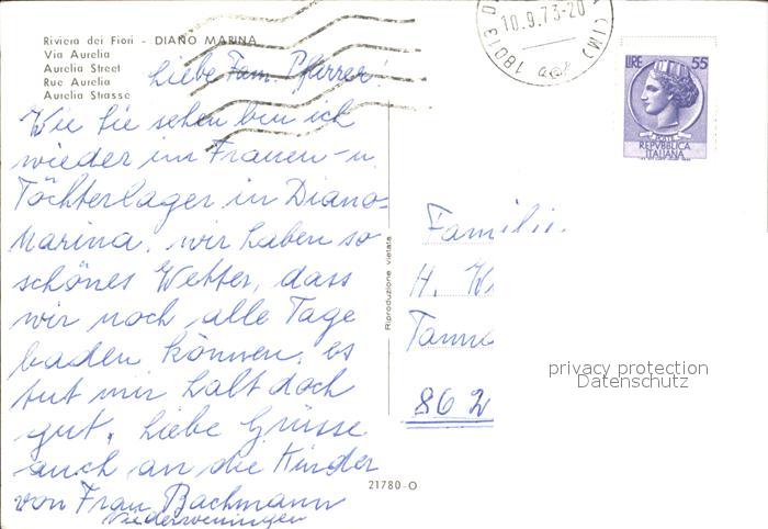 old postcard Diano Marina Giardini Via Aurelia postalisch gelaufen Erhaltung siehe scans
