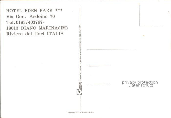 Diano Marina Hotel Eden Park Spiaggia Riviera dei Fiori veduta aerea postalisch nicht gelaufen Erhaltung siehe scans [FriedD77]