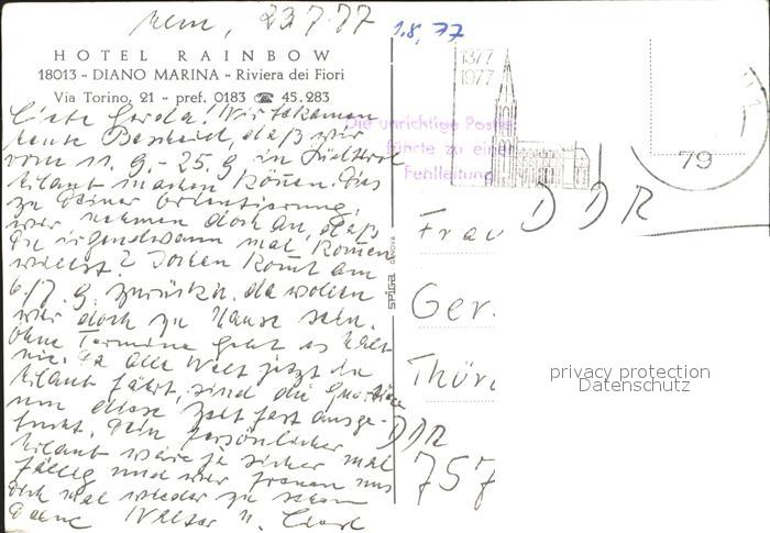 old postcard Diano Marina Hotel Rainbow postalisch gelaufen Erhaltung siehe scans