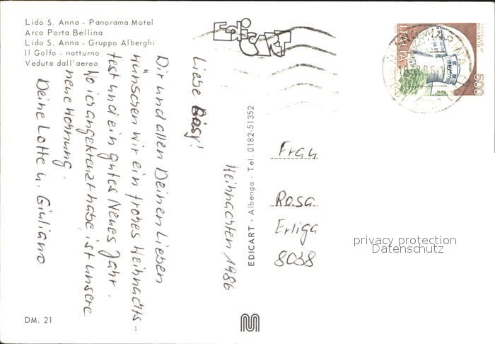 old postcard Diano Marina Lido Santa Anna Panorama Motel Arco Porta Bellina Alberghi Golfo postalisch gelaufen Erhaltung siehe scans [FriedD77]