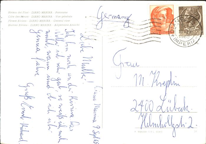 old postcard Diano Marina Panorama postalisch gelaufen Erhaltung siehe scans