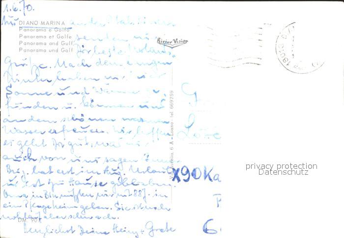 old postcard Diano Marina Panorama Golfo Kueste Baumbluete postalisch gelaufen Erhaltung siehe scans
