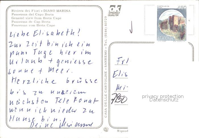 Diano Marina Panorama vom Berta Cape postalisch nicht gelaufen Erhaltung siehe scans