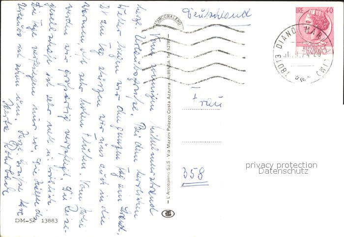 old postcard Diano Marina Park Strand Sonnenuntergang Fischerboot postalisch gelaufen Erhaltung siehe scans