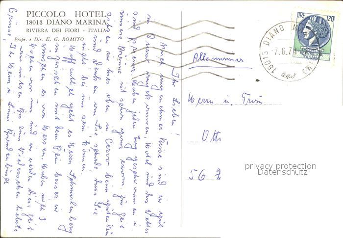 old postcard Diano Marina Piccolo Hotel postalisch gelaufen