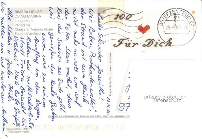 old postcard Diano Marina promenade Kirche Stadtansicht postalisch gelaufen Erhaltung siehe scans