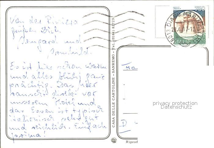 old postcard Diano Marina Promenade Markt postalisch gelaufen Erhaltung siehe scans