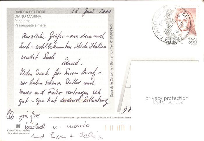 old postcard Diano Marina Promenade Strand postalisch gelaufen Erhaltung siehe scans