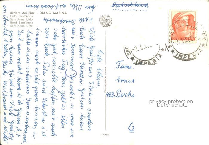 old postcard Diano Marina Sant Anna Ufer postalisch gelaufen Erhaltung siehe scans