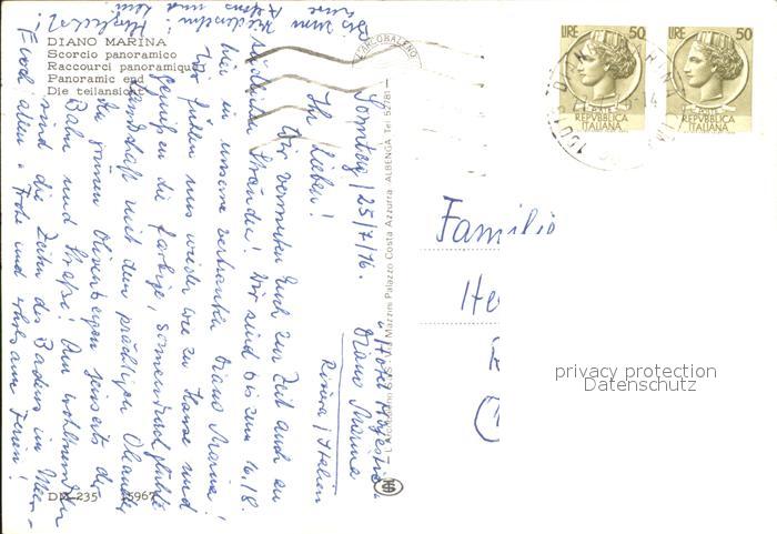 old postcard Diano Marina Scorcio panoramico Uferpromenade postalisch gelaufen Erhaltung siehe scans