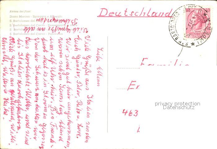 old postcard Diano Marina Spiaggi e Alberghi S Bartolomeo del Cervo La scogliera postalisch gelaufen Erhaltung siehe scans