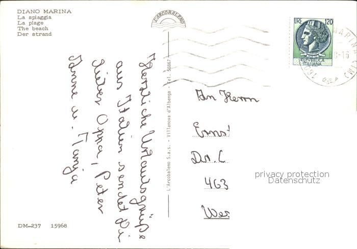 old postcard Diano Marina Spiaggia postalisch gelaufen Erhaltung siehe scans