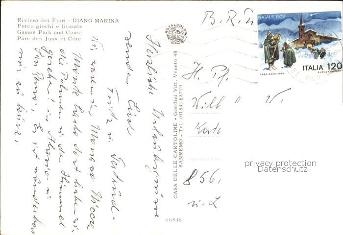 old postcard Diano Marina Spielplatz an der Strandpromenade postalisch gelaufen Erhaltung siehe scans