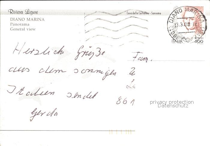 old postcard Diano Marina Stadtansicht postalisch gelaufen Erhaltung siehe scans