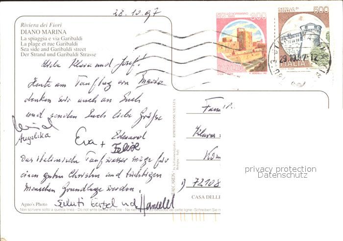 old postcard Diano Marina Strand Garibaldistrasse postalisch gelaufen Erhaltung siehe scans