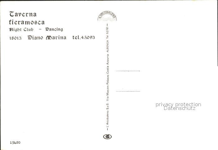 Diano Marina Taverna Fieramosca Night Club postalisch nicht gelaufen Erhaltung siehe scans