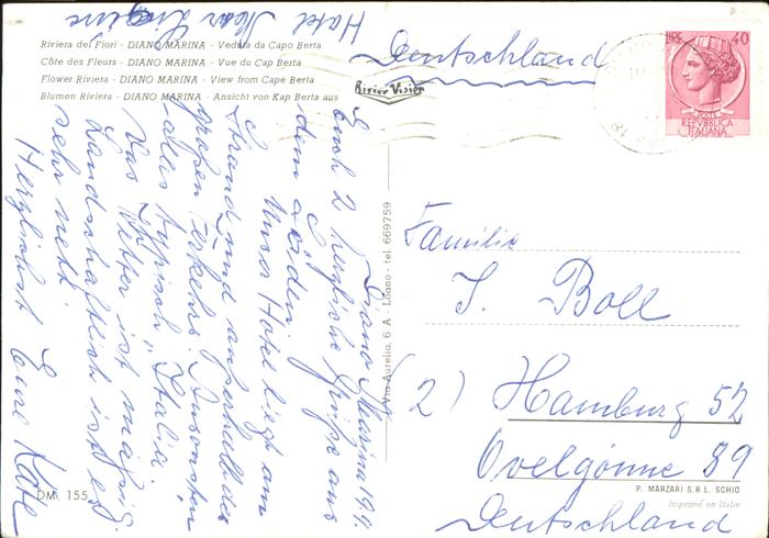old postcard Diano Marina Veduto da Capo Berta postalisch gelaufen Erhaltung siehe scans