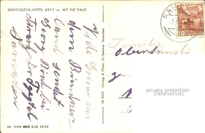 11739207 alte Postkarte Diavolezza Huette Piz Palue postalisch gelaufen KatCode: 11470360565270