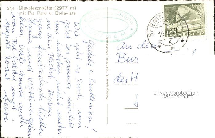 11853306 alte Postkarte Diavolezzahuette mit Piz Palue und Bellavista postalisch gelaufen Erhaltung siehe scans KatCode: 11470360565270