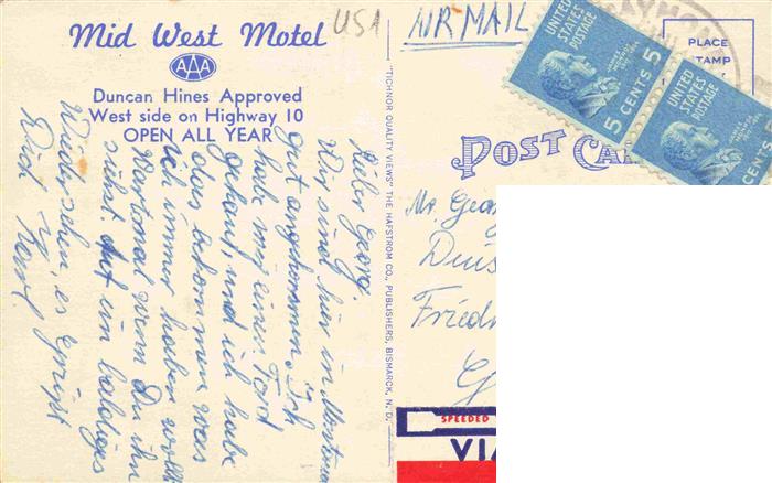 73974826 old postcard Dickinson North Dakota USA Mid West Motel postalisch gelaufen Erhaltung siehe scans [WerneD78] KatCode: 14140360000000